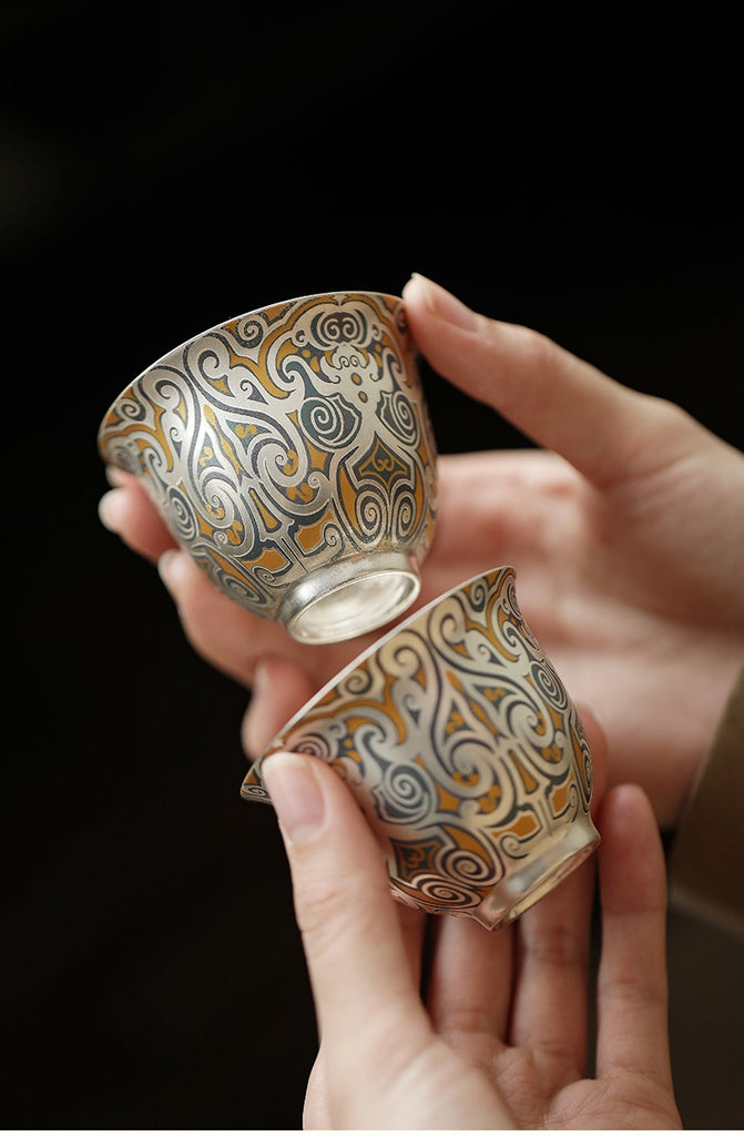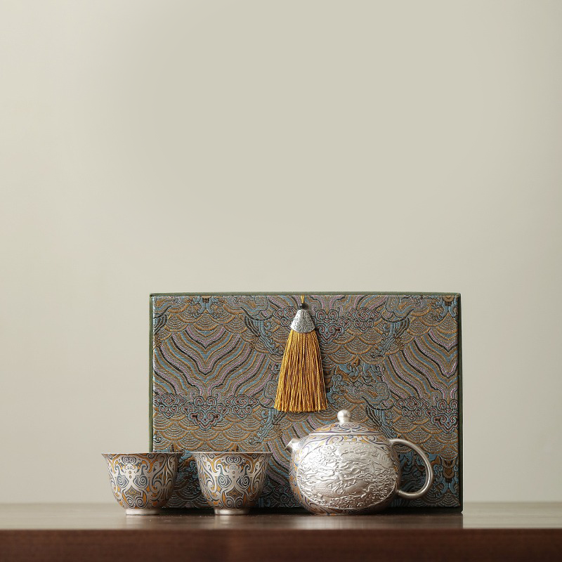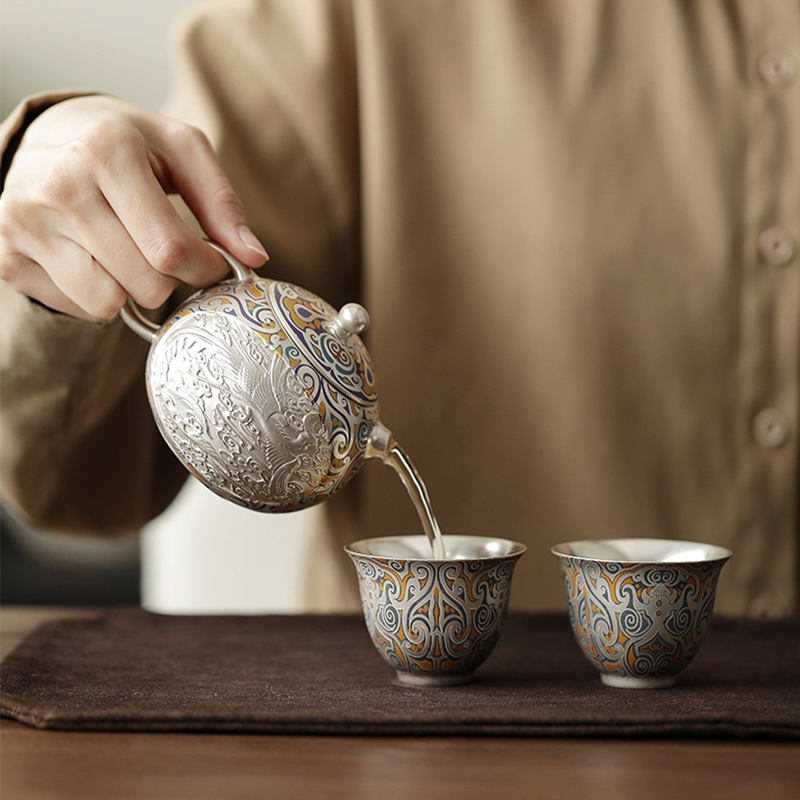 Handmade Silver Plated Chinese Porcelain Tea Set DUNHUANG - JXS2