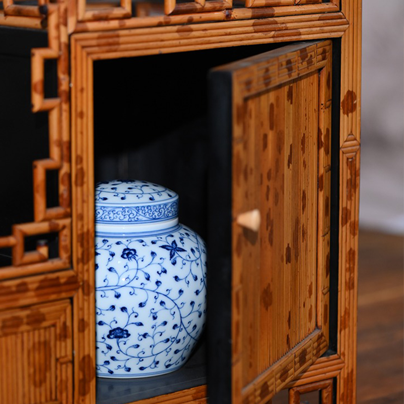 Xiangfei Bamboo, also called "Tear Bamboo" is a bamboo species native to Hunan, Fujian, and Guizhou provinces of China, characterized by extraordinary natural tear-drop patterns formed on its tube from fungi erosion during the process of growth, which can come in both red and purple. Due to its low production volume, it has been an extremely precious material utilized in traditional and modern Chinese stationery-making and fan-making.