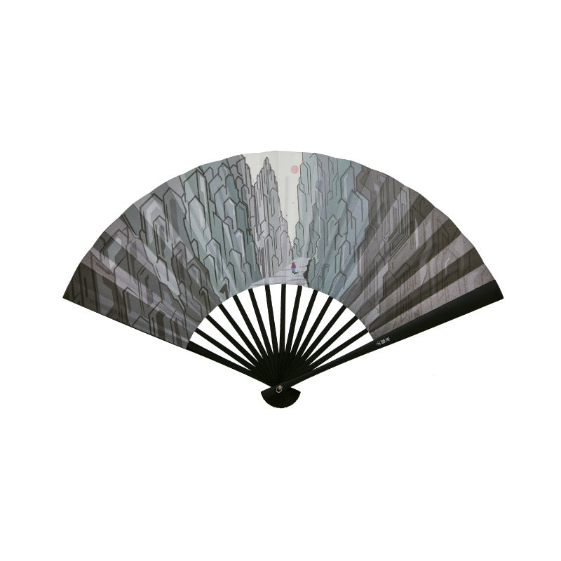 Contemporary handmade Chinese fan with ultra modern pattern design. A chic accessory to match up with your summer outfit or to serve as a highlight to your oriental home decor.