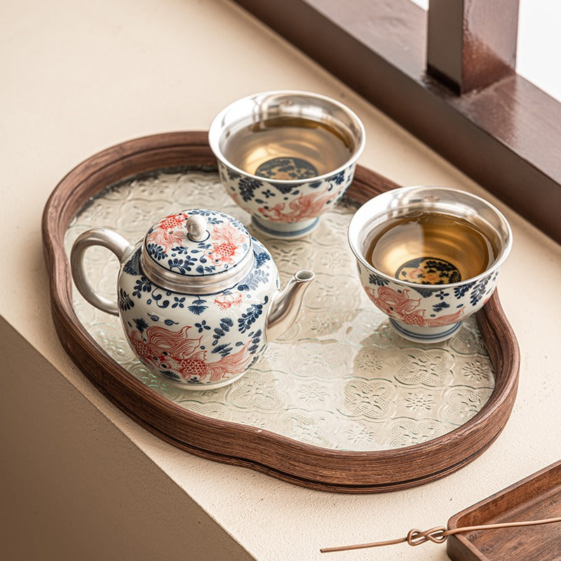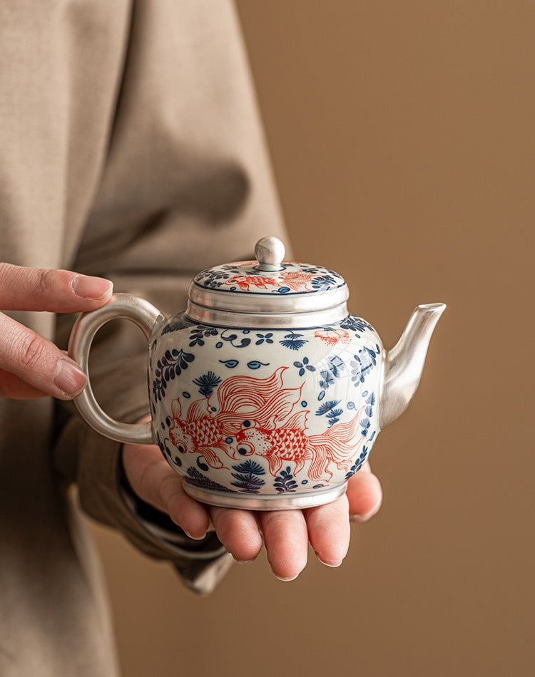 Handmade Silver Plated Chinese Porcelain Tea Set - CYF6
