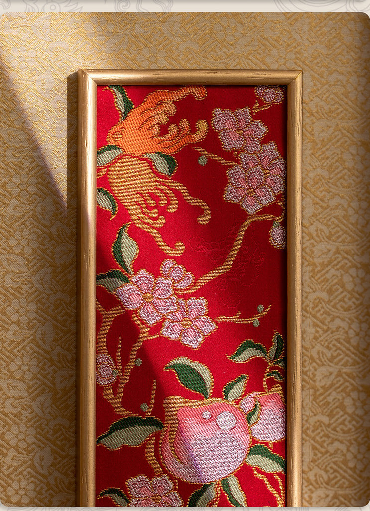 Called Yunjin(云锦)in Chinese meaning "brocade of the clouds", the Chinese Imperial Brocade as its named indicates is a hand-woven fabric of extremely delicate details, made from 100% silk, or an amalgamation of silk threads, peacock feathers, and precious metal threads such as gold, silver and copper to form a high-value lustrous textile to be used in imperial apparels and for royal gifting to high officials in court.