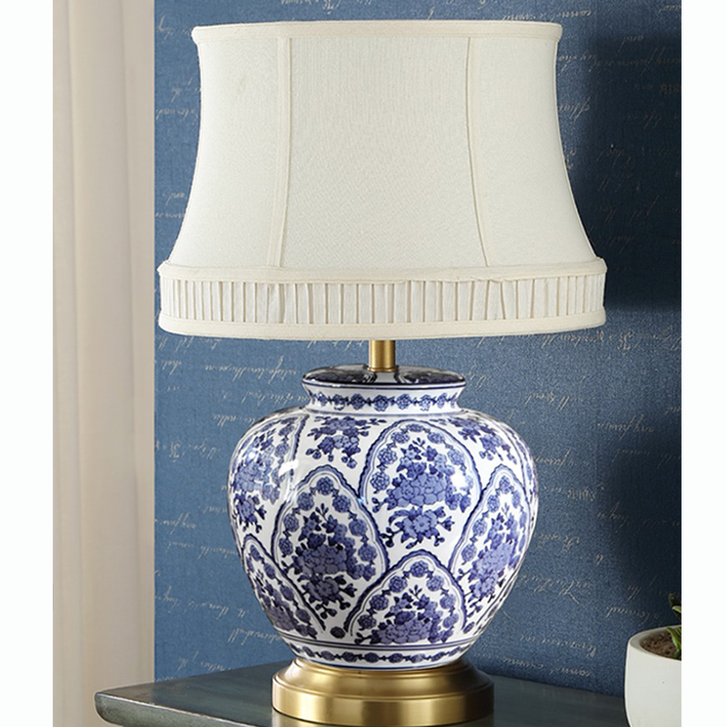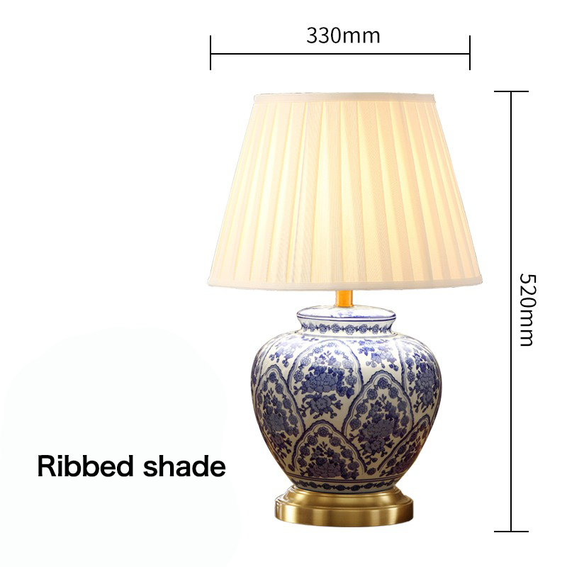 A classic blue and white porcelain table lamp with a timeless look to accommodate any modern and classic interior styles. Available in two lamp shade options.