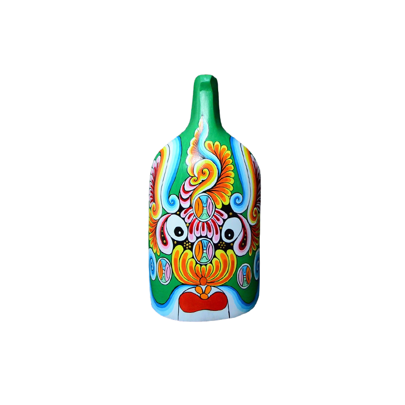 Baoji Painted Horse Ladle(宝鸡马勺脸谱) is a form of folk art which draws colorful artistic faces on water ladles for feeding horses or for storing grains developed in history by the people of Baoji District in Shanxi Province. The mask is formed often in an oval shape, decorated with vibrantly painted facial makeup on the convex face for traditional merry-making festivities based on the ingenuity of the craftsman who created it. People hang it inside their house to attract good luck.