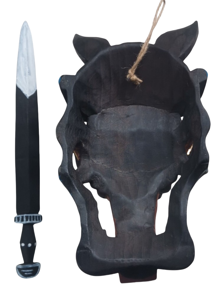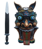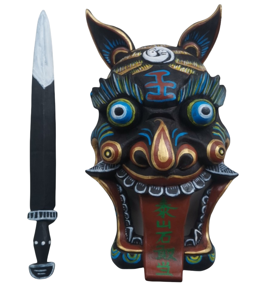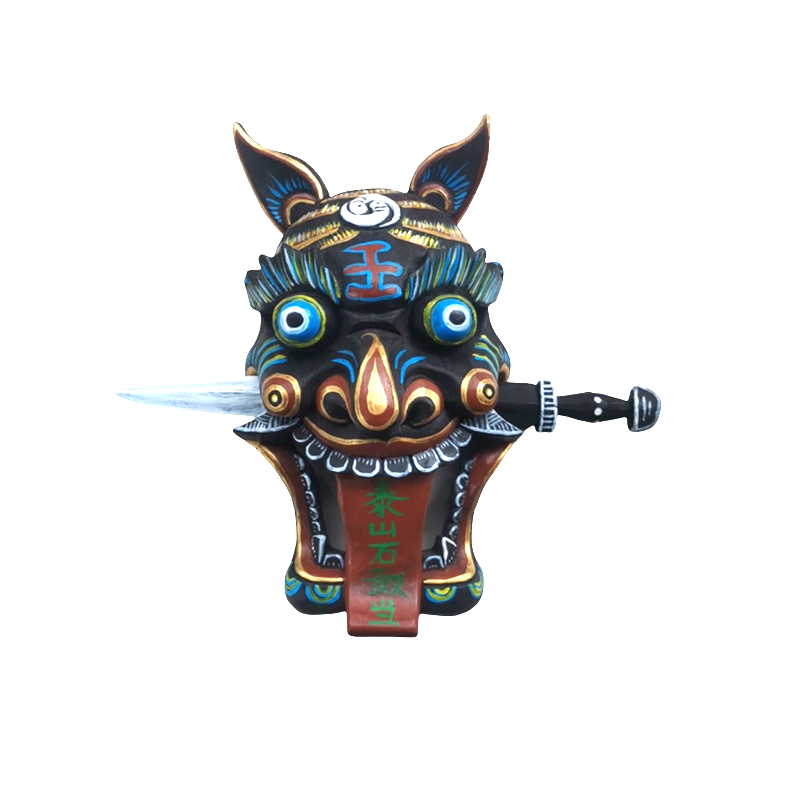 The Nuo mask(傩戏面具)is the most important element of Nuo Opera (傩戏), a Chinese form of folk operas performed by shamans and Nuo performers in a ritual dance performed to give tribute to the sacred and ask for good blessings and fortune. Due to its functions, it's considered a transcendental object holding the power of enabling communications between the living and the sacred, thus being considered a piece for dispelling ominous and bringing auspiciousness by Chinese households traditionally.
