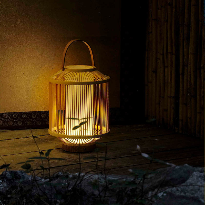 Handmade Portable Bamboo Table Lamp with Handle USB Charge - BM7