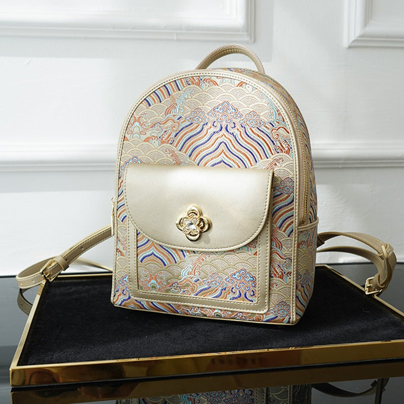 Oriental Women's Backpack SILK & COWHIDE - WSJ6
